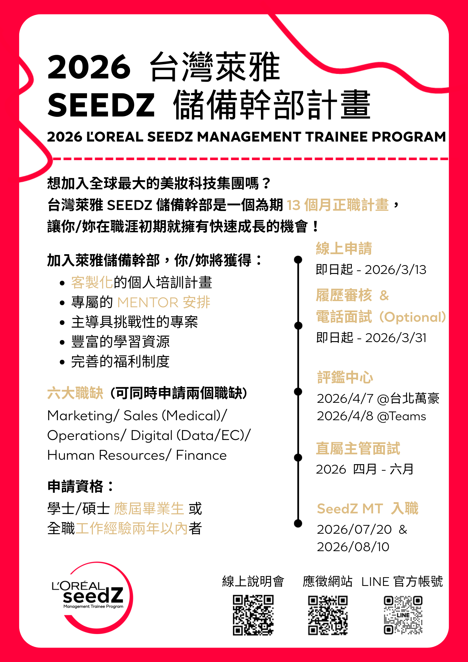[台灣萊雅] SeedZ 儲備幹部招募開跑 2026-01-26 |